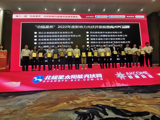 水發(fā)綠能公司在第十一屆“北極星杯”2022年度光伏影響力品牌頒獎典禮榮獲兩項大獎