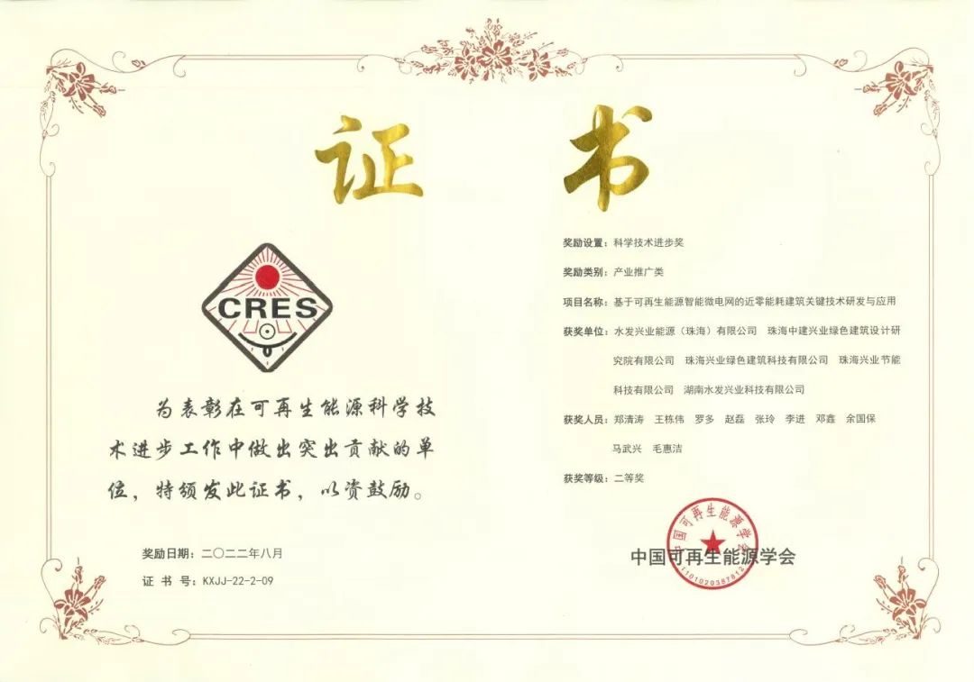 水發興業能源榮獲2022年度中國可再生能源學會科學技術獎二等獎